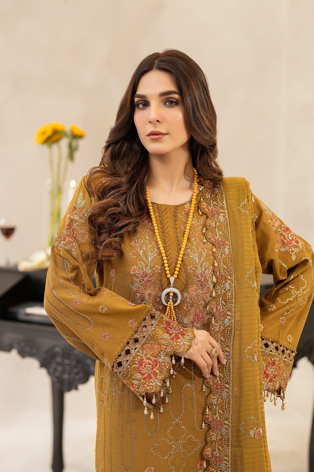 Embroidery Slub Organza Dupatta (Ready to Wear) 2.5 METER