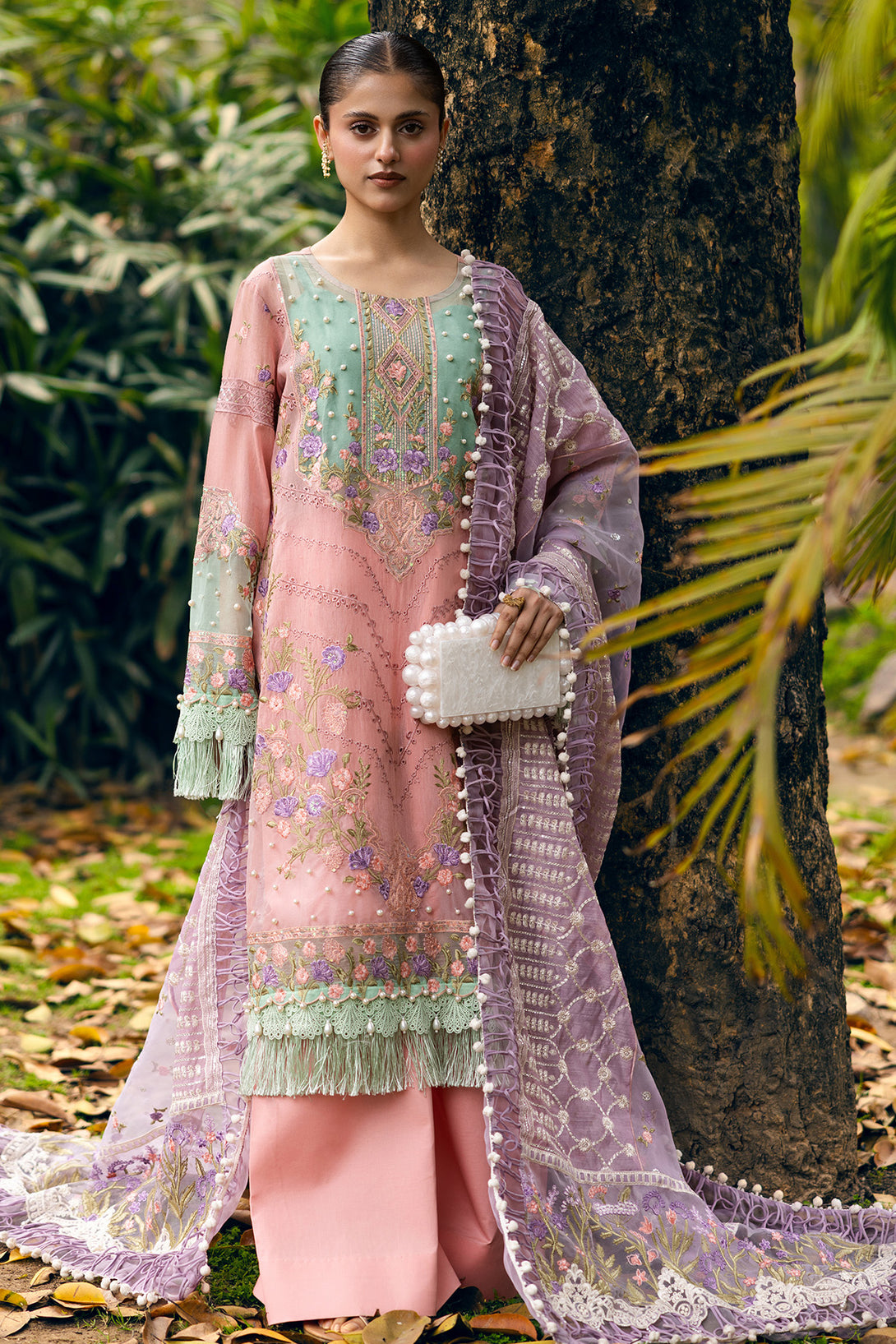 • Embroidered Sleeves Border On Organza!