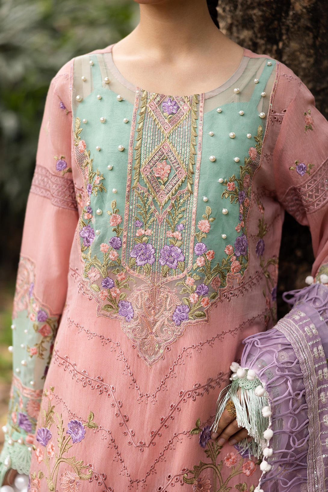 • Embroidered Sleeves On Silk Lawn No Patch!