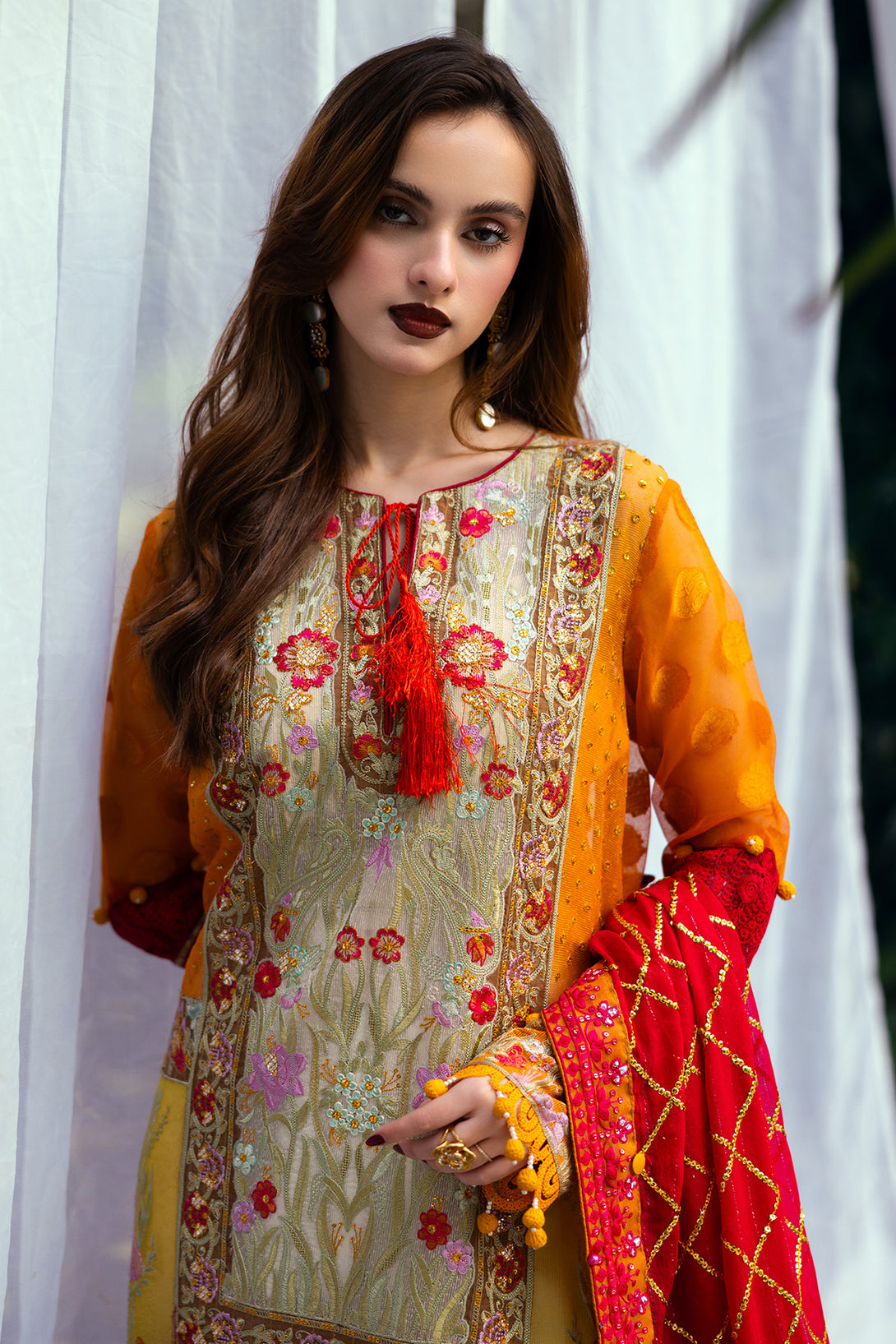• Embroidered Stitched Dupatta On Chiffon!