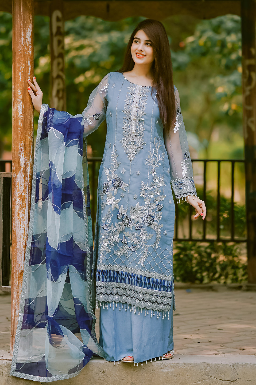 EMBROIDERED FRONT WITH EMBALISHMENT 1 PC ORGANZA