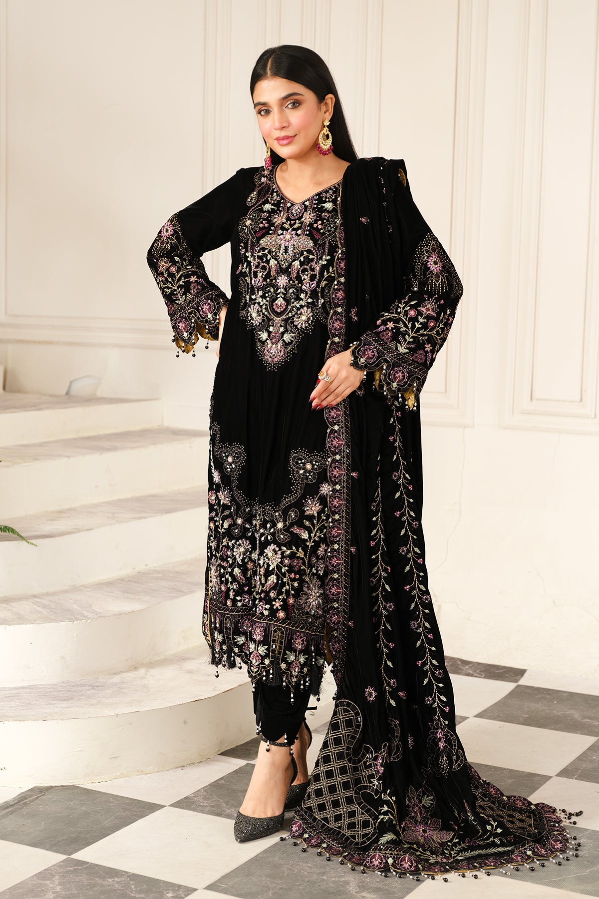 • Embroidered Velvet Bazu