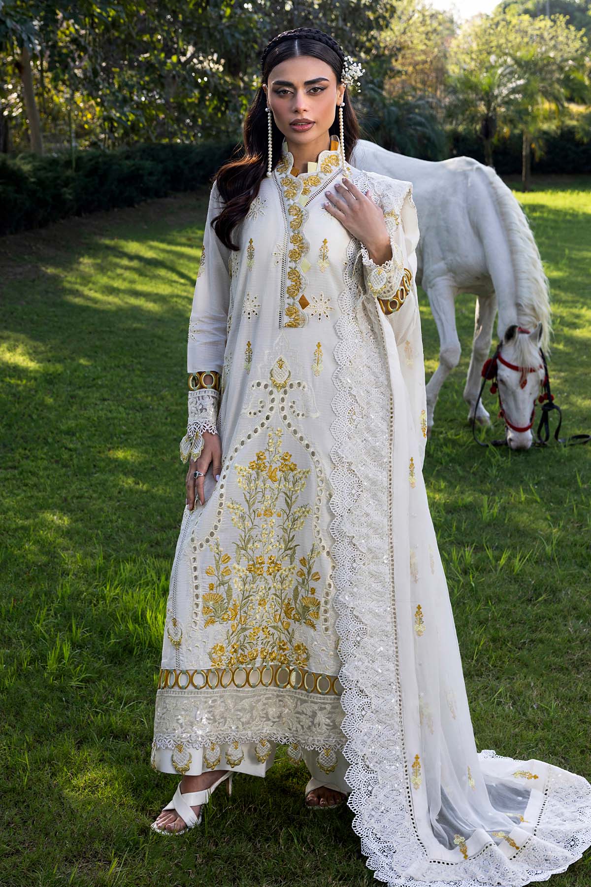 • Embedded Stitched Dupatta On Chiffon