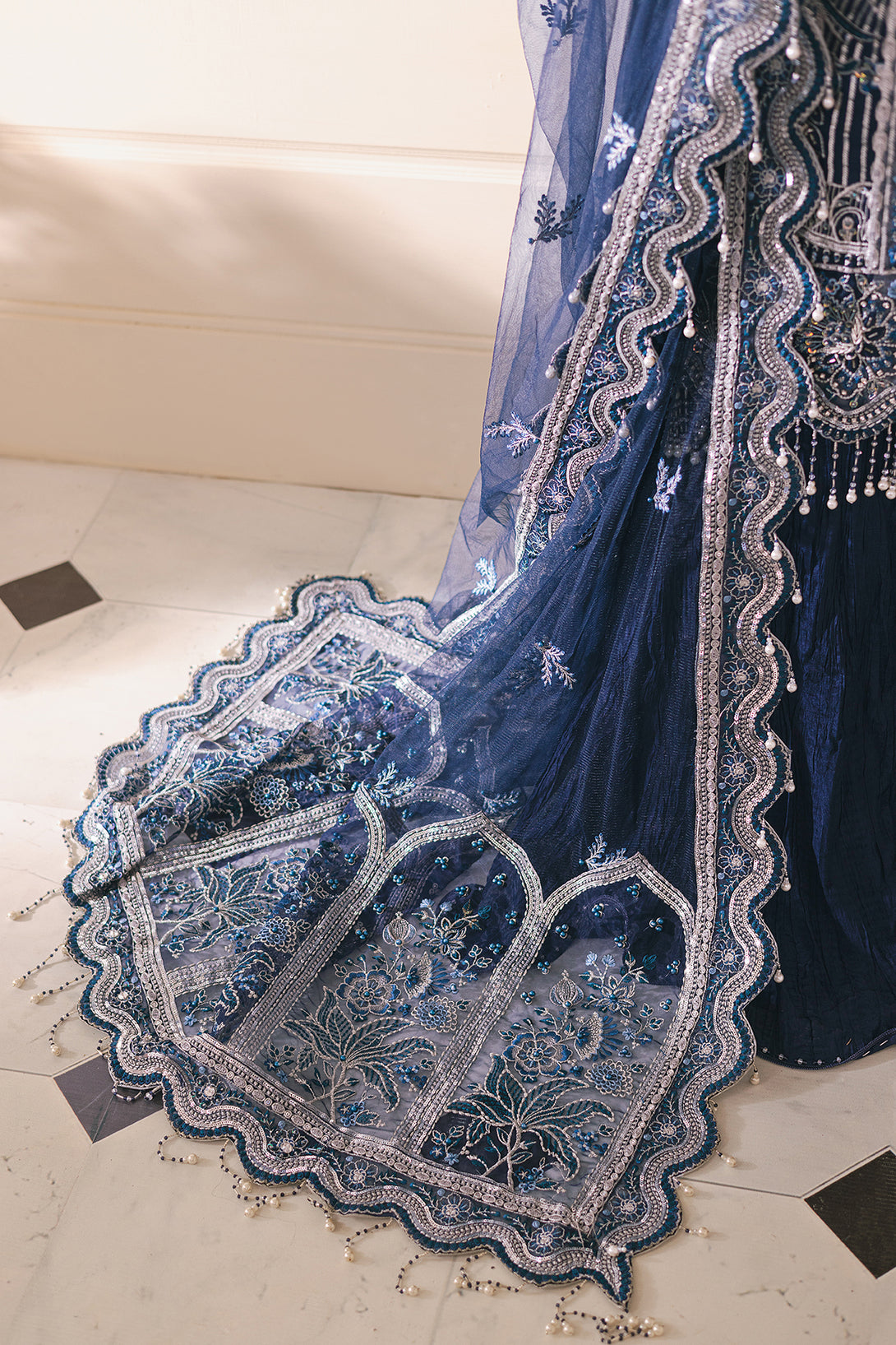 • Embroidered OrganzaBazu Border with Embelishment